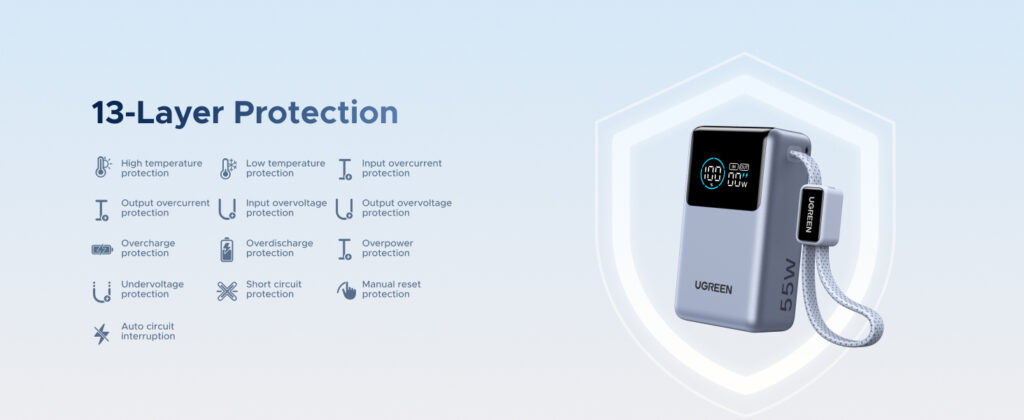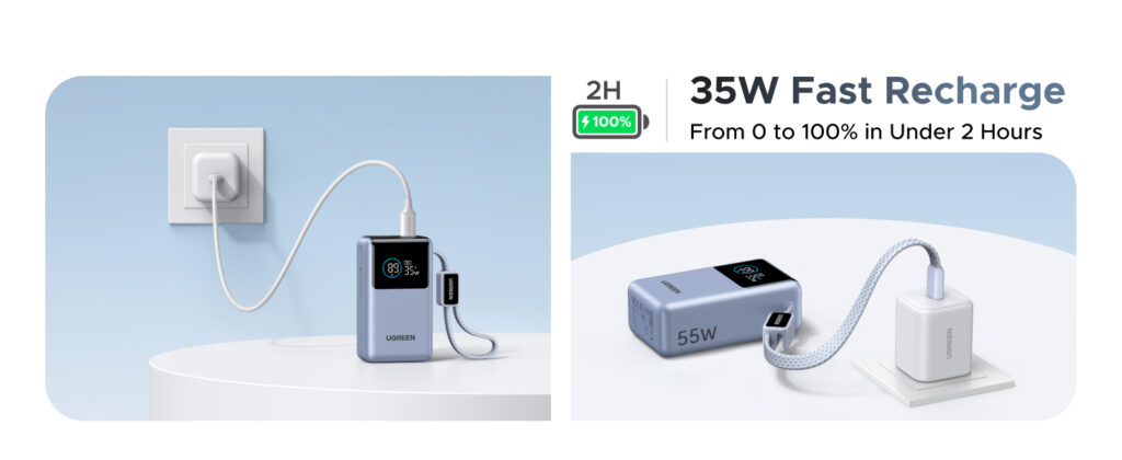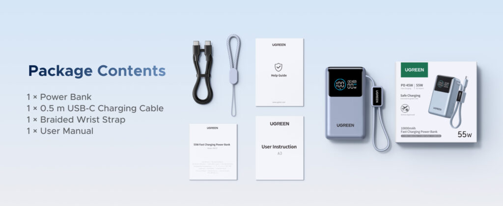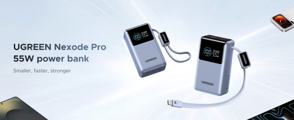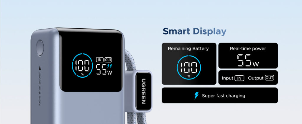 UGREEN 10000mAh 55W Nexode Pro Smart Digital Display Mini Power Bank with Build-in Type-C Cable – PB727