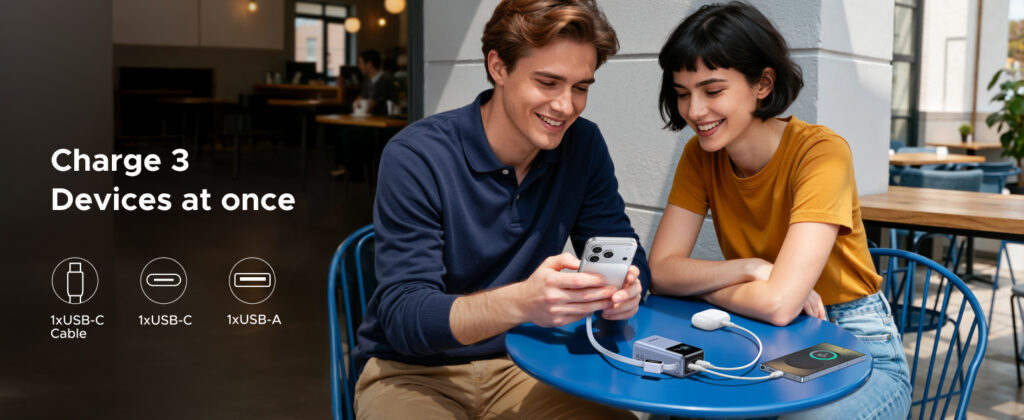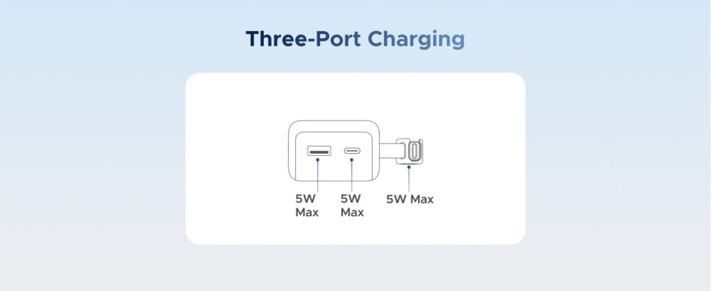 • 3-Device Charging – Built-in USB-C, USB-C port, and USB-A port