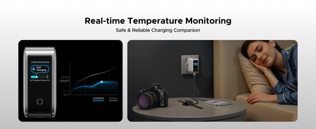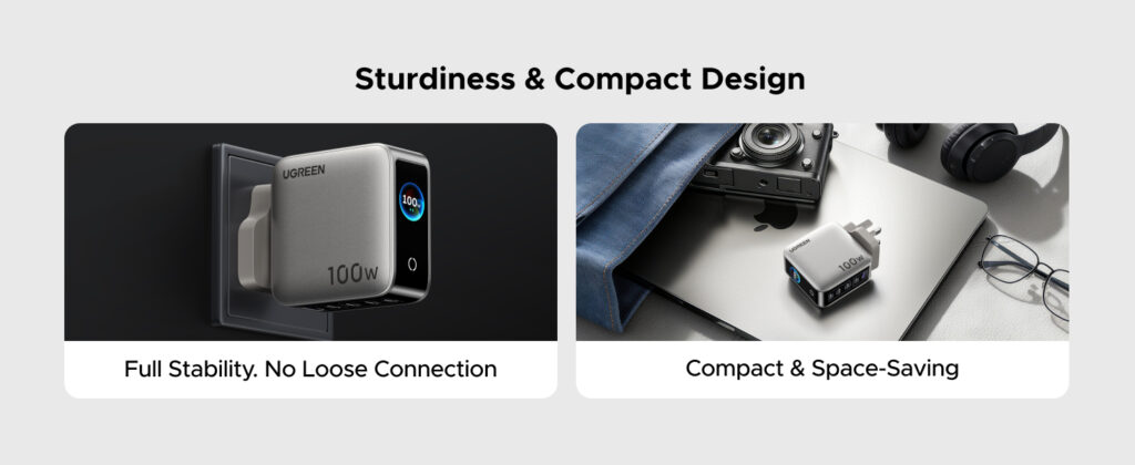 Power all your devices with a single compact solution. The UGREEN Nexode Pro X773 is a high-performance 100W GaN fast charger featuring 5 ports and a smart digital display, designed to charge laptops, tablets, smartphones, and accessories simultaneously—efficiently and safely.