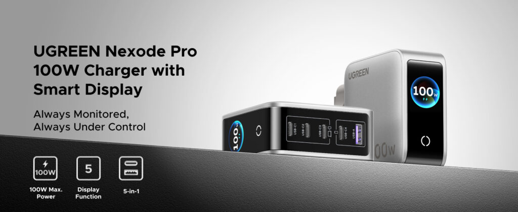 UGREEN 100W Nexode Pro 5-Port GaN Fast Charger with Smart Display UK – X773 – 65621B