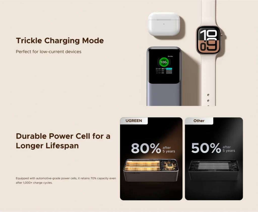 Keep all your devices charged and ready with the UGREEN 20000mAh 165W Power Bank with Retractable Cable – PB726 – a robust, smart, and convenient power solution for life on the move.