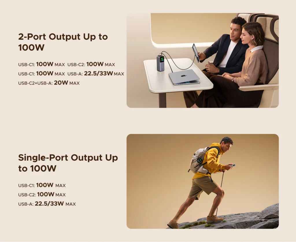 - Supports multi-device fast charging for laptops, tablets, and smartphones