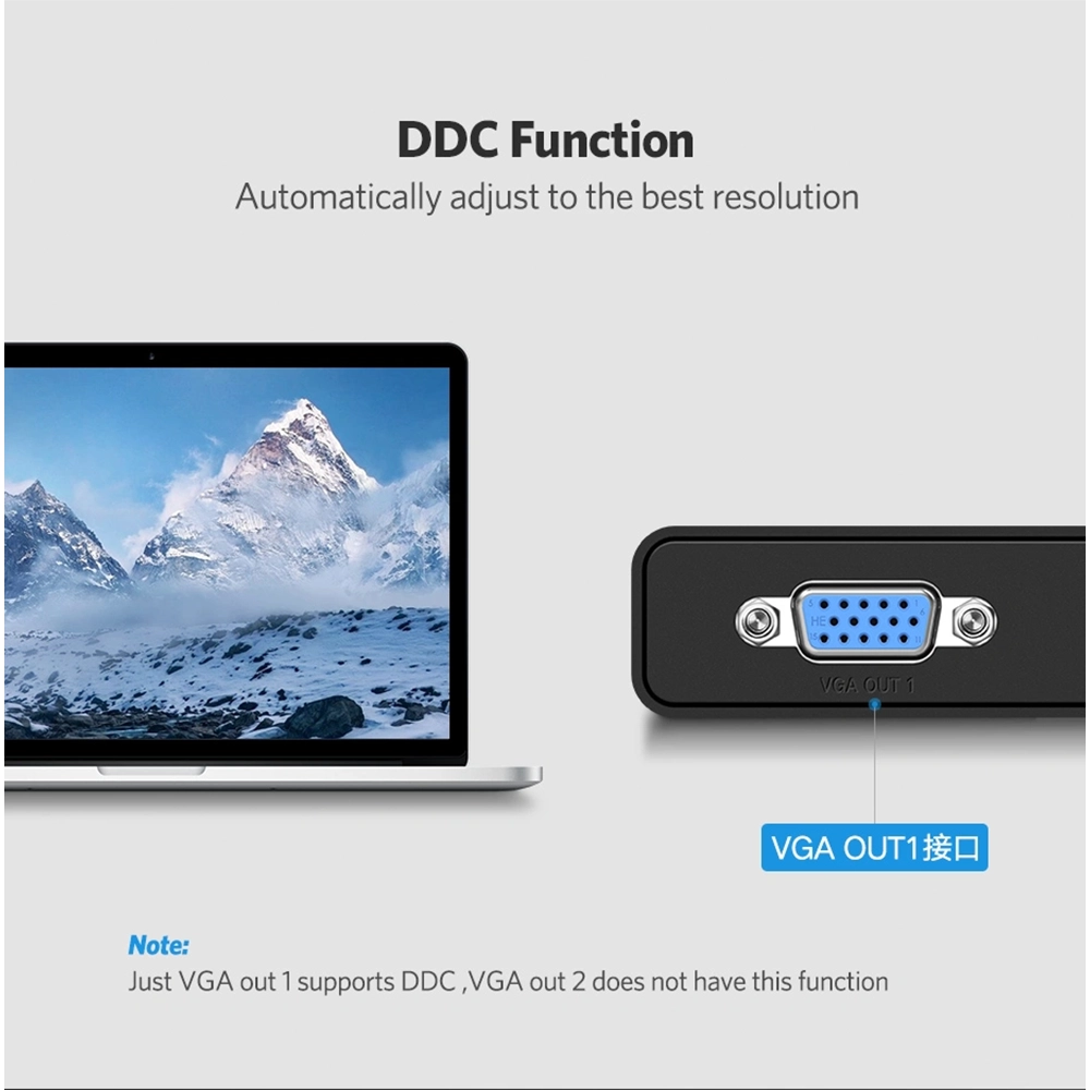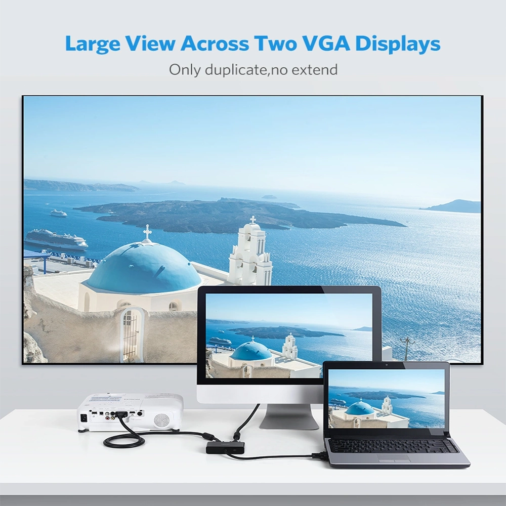 Easily share your screen across two displays with the UGREEN VGA Splitter Cable. Designed for both professional and home use, this cable allows you to duplicate a single VGA signal to two monitors simultaneously, making it perfect for presentations, classrooms, and multi-display setups.