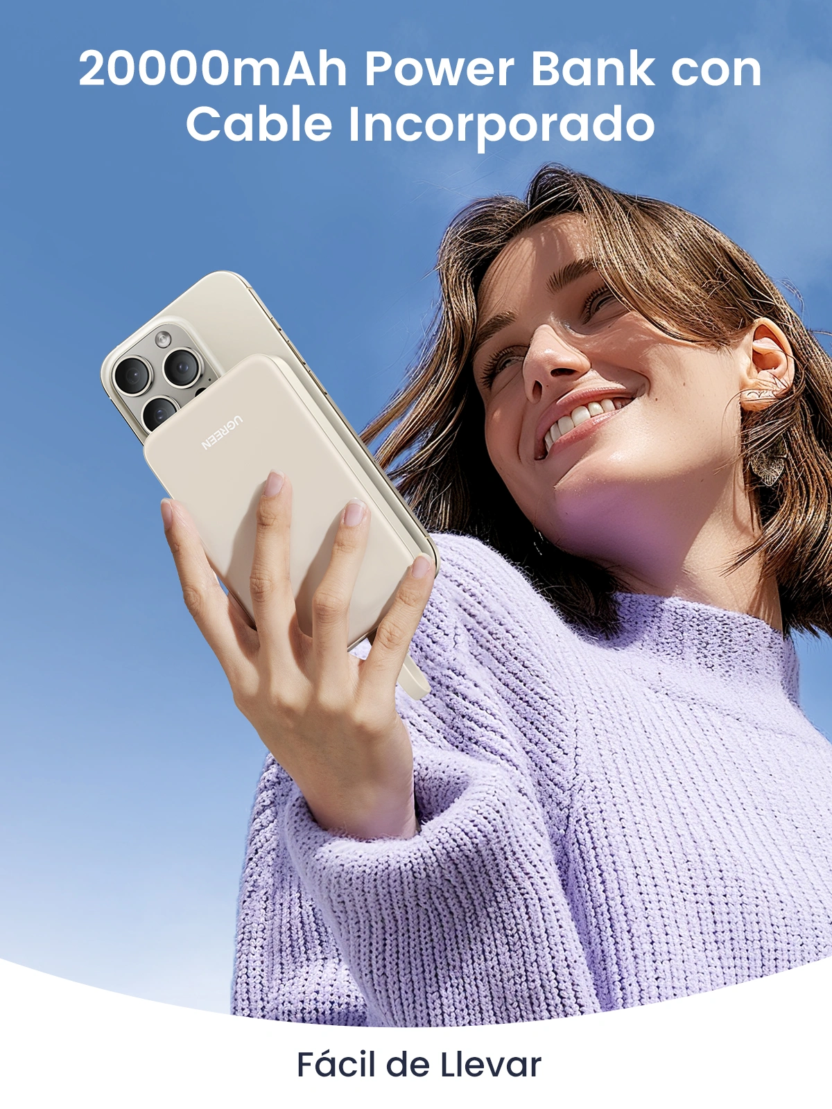 UGREEN 20000mAh 20W Power Bank with Built-in USB-C Cable