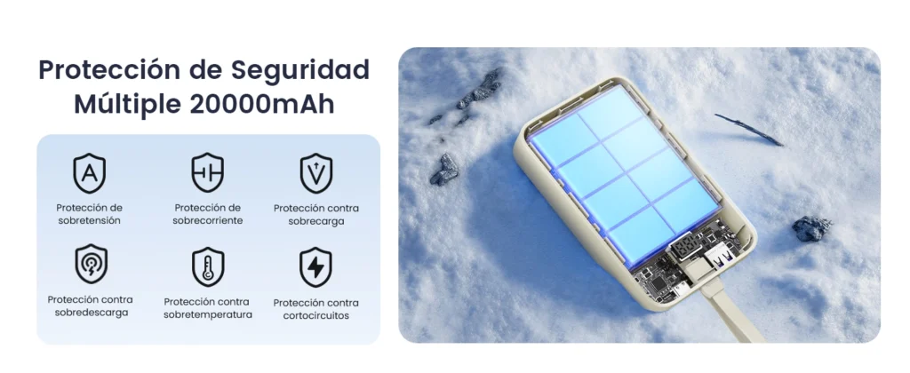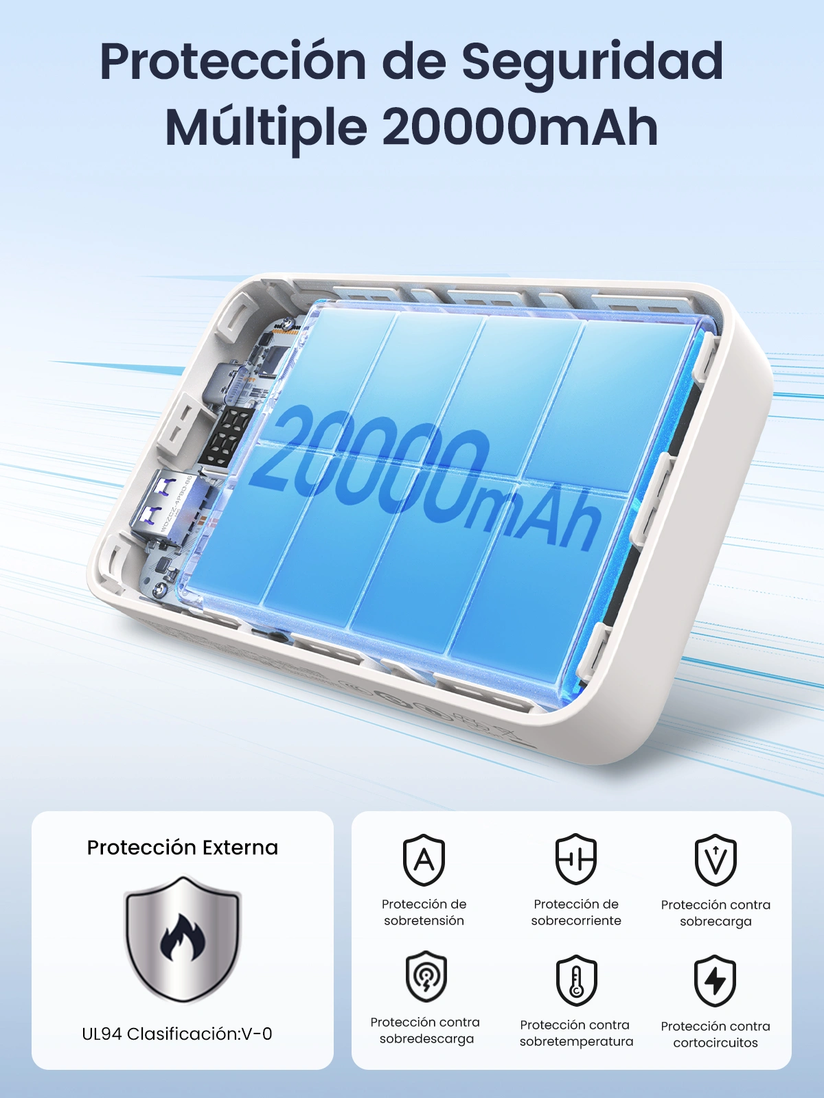 Equipped with over-voltage, over-current, over-charge, and short-circuit protection. The V-0 fire-resistant shell adds an extra layer of safety.