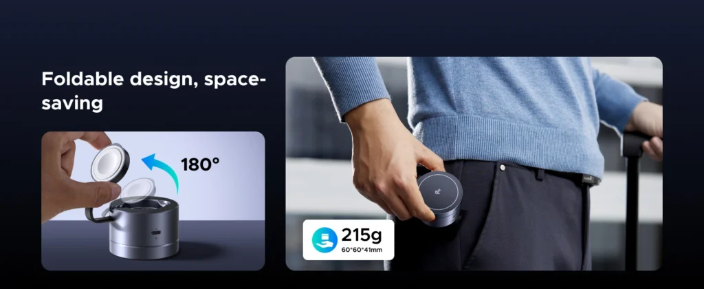 • Compact Foldable Design – 60×60×41mm, lightweight 215g, travel-friendly