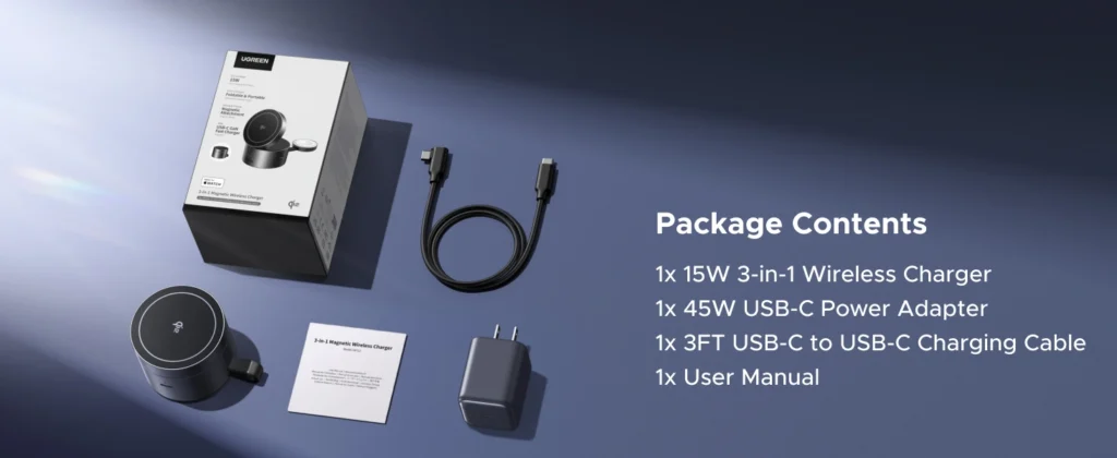 UGREEN 25W Qi2 3-in-1 Magnetic Wireless Charger + 45W GaN Charger (EU Plug) – W712 (65148)