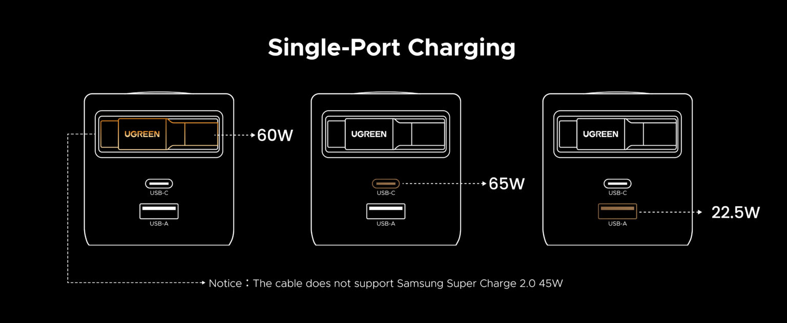 65W GaN Fast Charging – Supports PD 3.0 and PPS to power laptops, tablets, and smartphones at top speed.