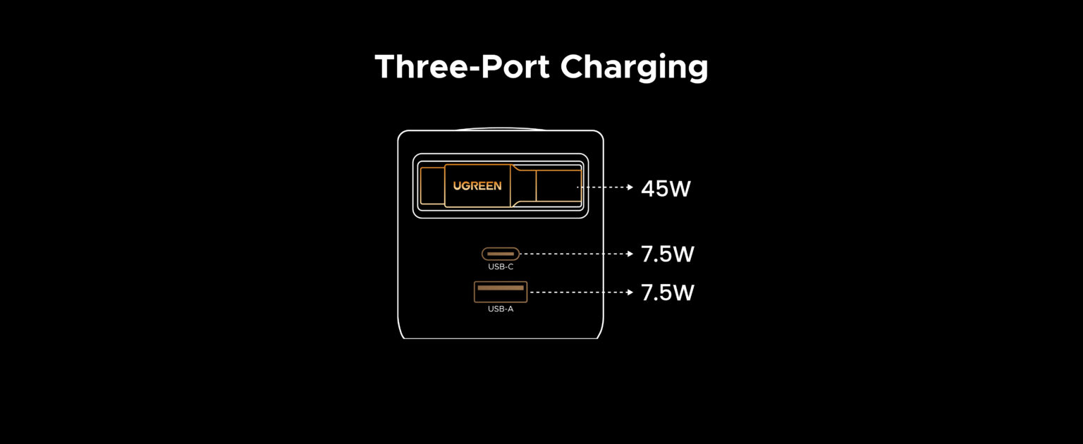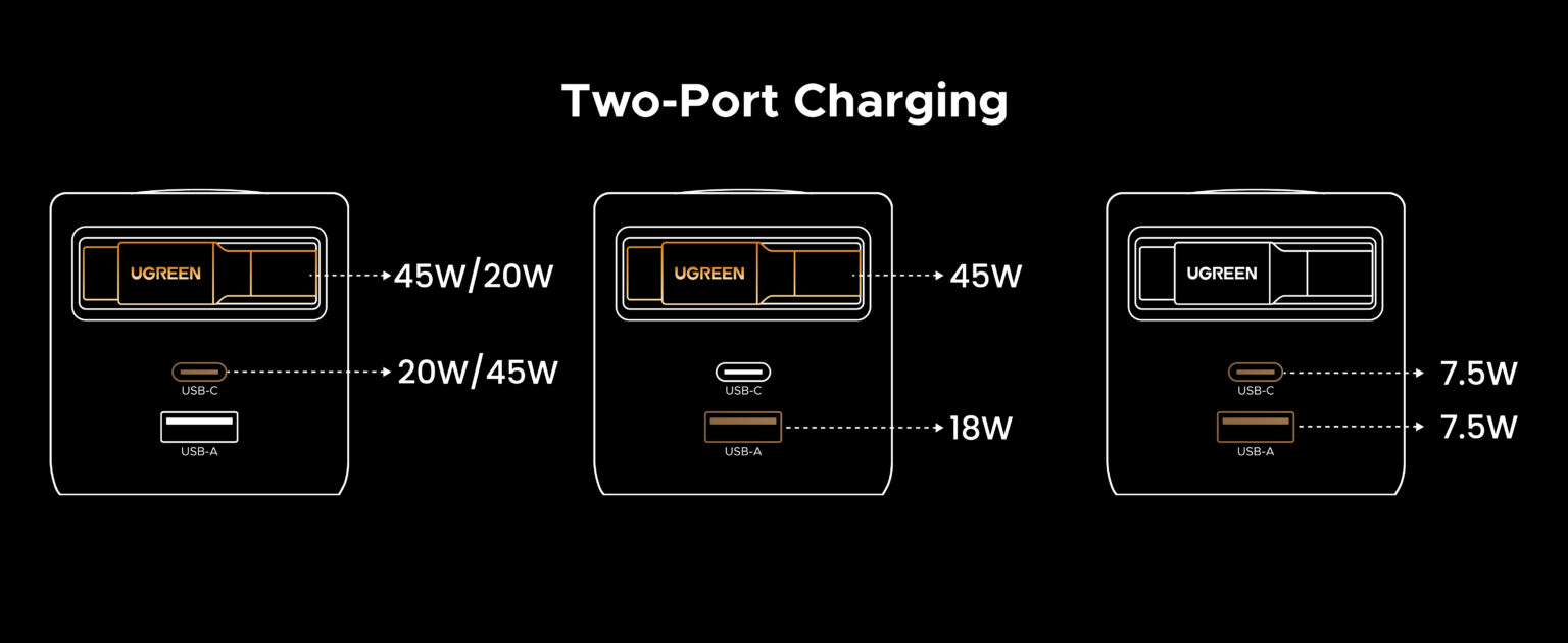 Dual Port Output (USB-C + USB-A) – Charge two devices simultaneously with smart power allocation.