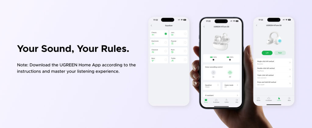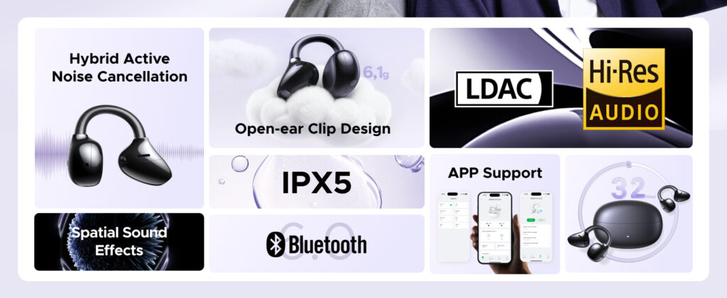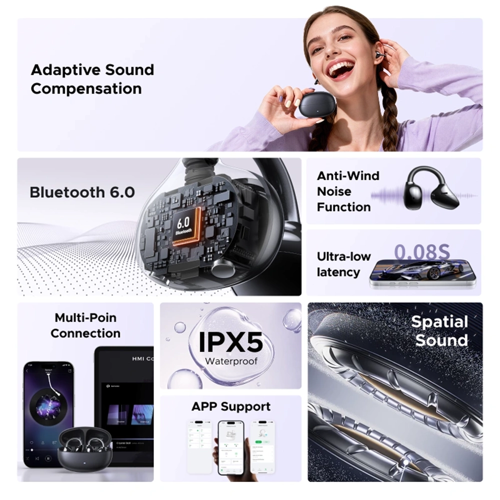 Experience next-level audio with the UGREEN ClipBuds Pro, designed for active lifestyles and all-day comfort. Featuring an innovative open-ear clip design, Adaptive ANC, and Hi-Res LDAC audio, these earbuds deliver immersive sound while keeping you aware of your surroundings—perfect for workouts, commuting, and daily use.