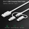 - Design: 3-in-1 multifunctional cable (Micro USB, Lightning, USB-C)